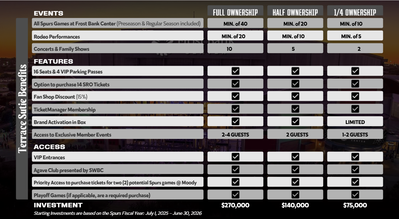 Experience the Suite Life by joining the Spurs Exclusive Full & Partial Suite holder family